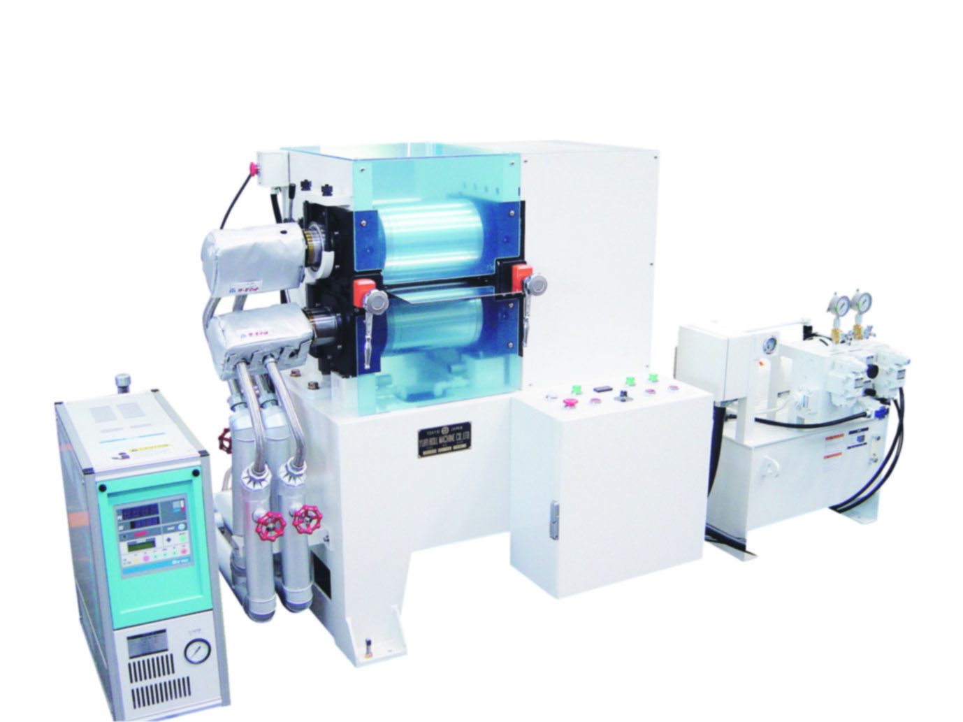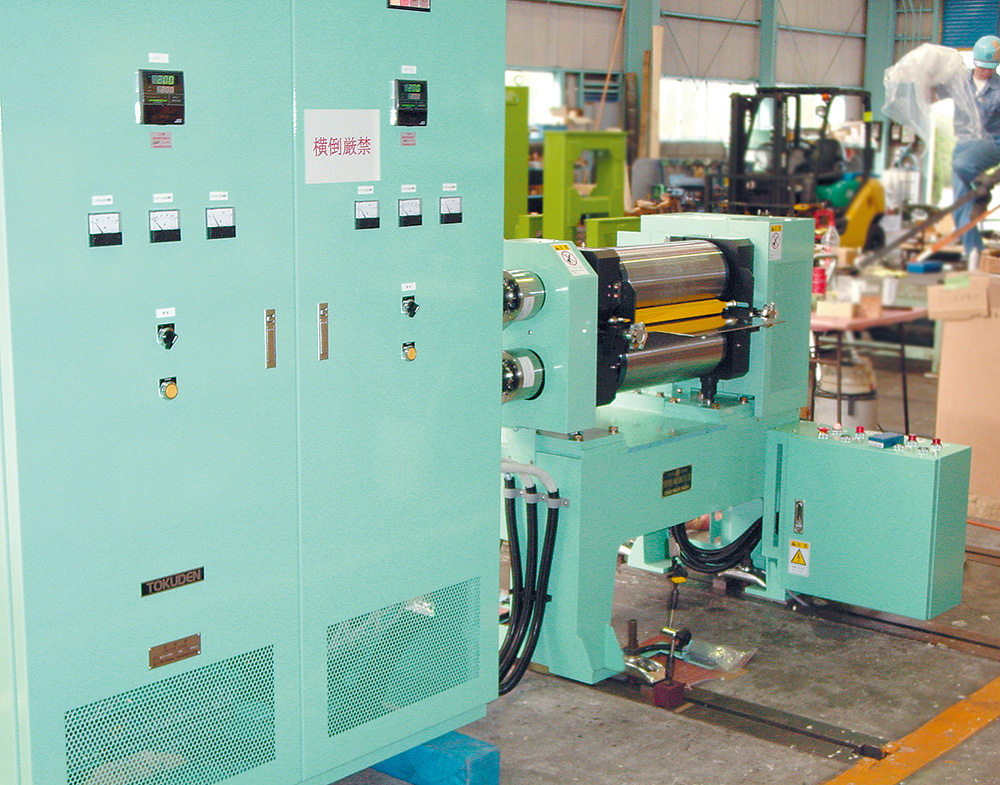 Following machines are able to be produced as testing machines: laminating machines, calendering machines, embossing machines, pressing machines and coating machines. In addition, there are standard specification machines which are in a short delivery period.