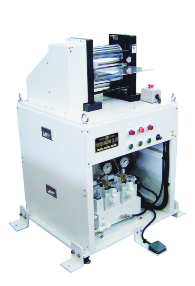 Roll press machines compress and calender substrates by passing them between rolls.